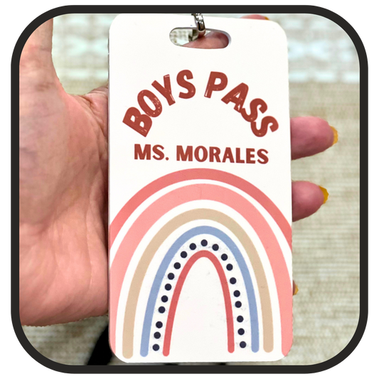 Boho Rainbow Classroom Passes, Hall Pass Set, Large Passes